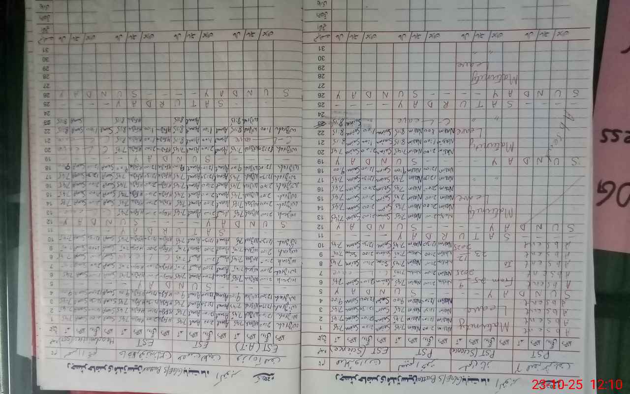 | No. of Students Present - Male | 0 | 0 | 0 | 0 | 0 | 0 | 0 | 0 | 0 | 0 | 0 | 0 | ||||