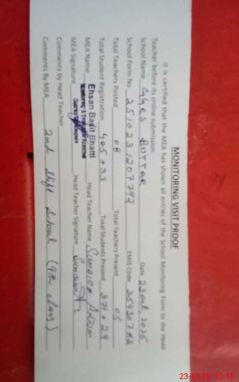 | Certified that this School was Inspected by the Undersigned MEA/DMO Today and the Information Stated Above is as Per Record. | |||||