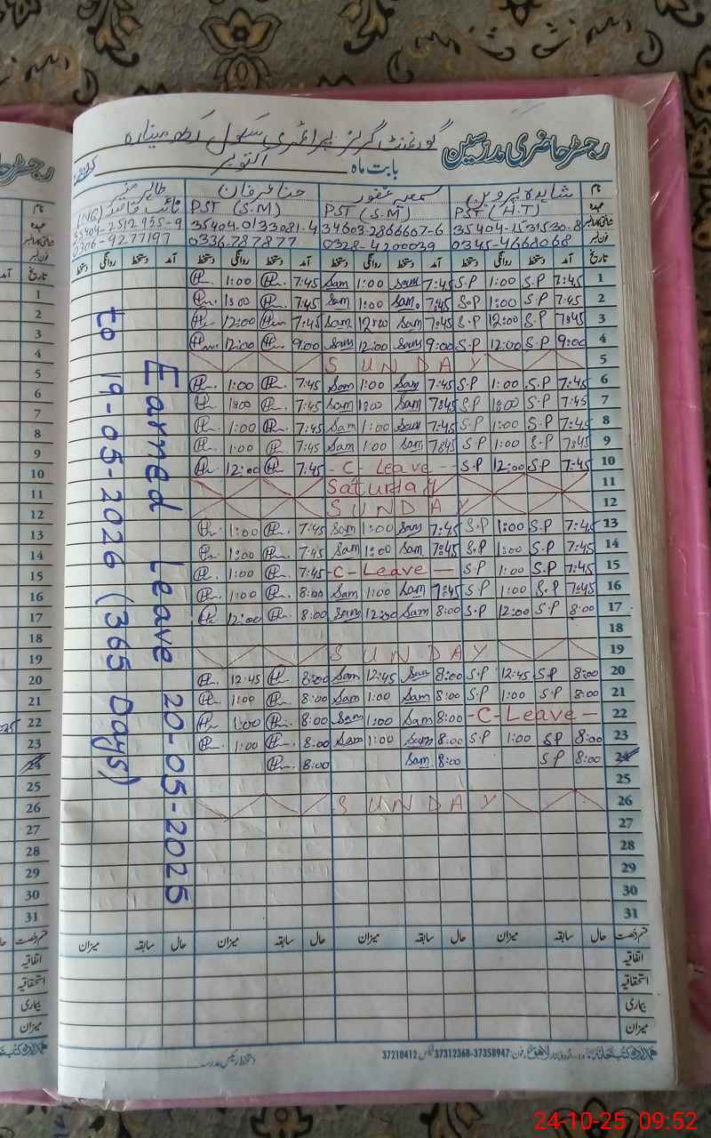 | Name: Sh**** Pa**** Designation: (School Headmaster's/Headmistress's) PST Phone/Cell Number: 03**** |