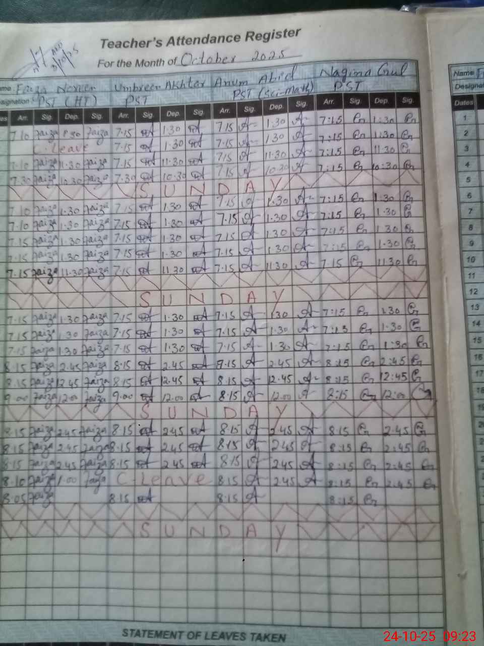 | Leave | Duty | Absent | Maternity | Medical | Ex- Pak |