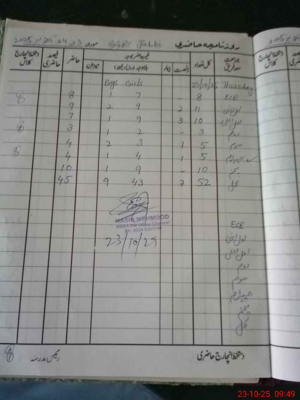 | Certified that this School was Inspected by the Undersigned MEA/DMO Today and the Information Stated Above is as Per Record. | |||||