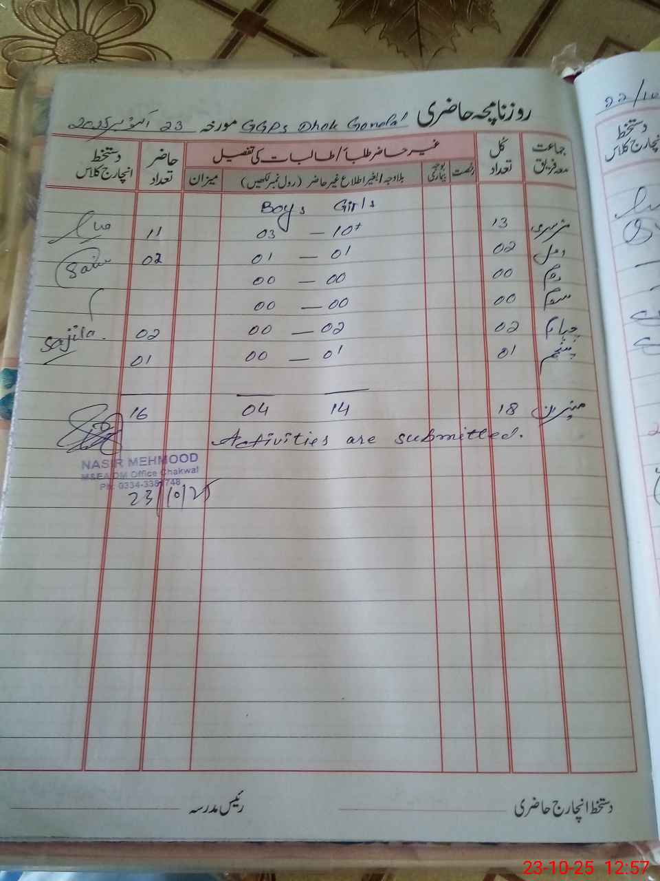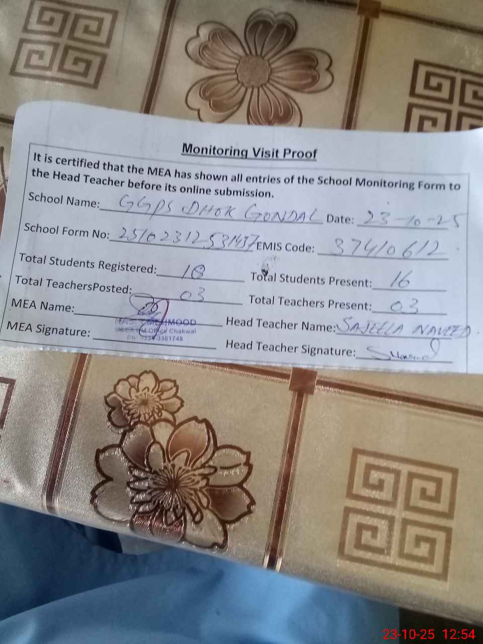 | EMIS Code: 37410612 | Name of School: GGPS DHOK GONDAL P/O DULLAH | |||