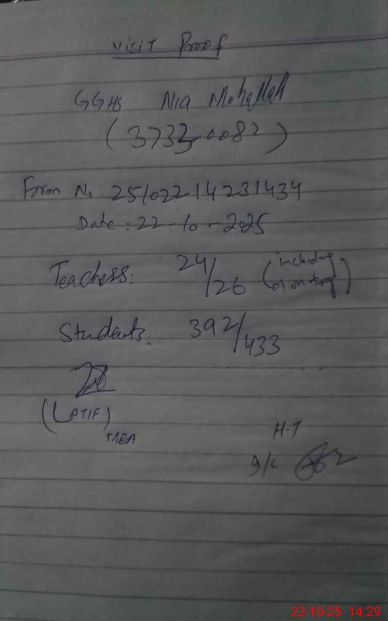 | EMIS Code: 37330082 | Name of School: GGHS MC NIA MAHALLAH RAWALPINDI | |||