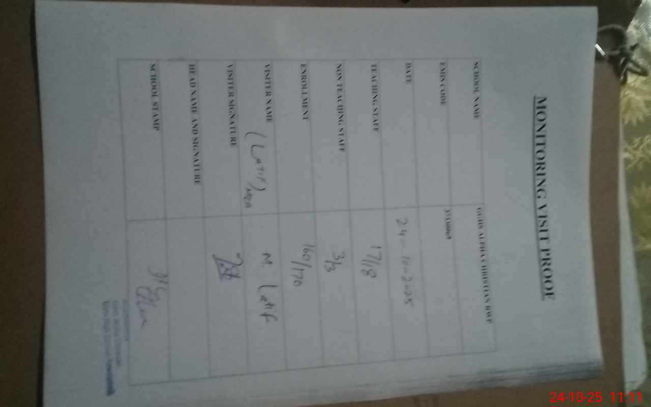 | Attendance Register | Head Teacher | MEA with School | Visit Proof |