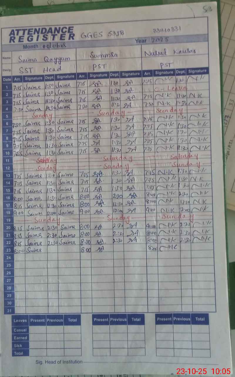 | 32**** | Sa**** Fa**** | Contract | 0 | 0 | 30 | 0 | 0 | 0 | 0 | 0 | 0 | Absent (Un-Authorized) | |