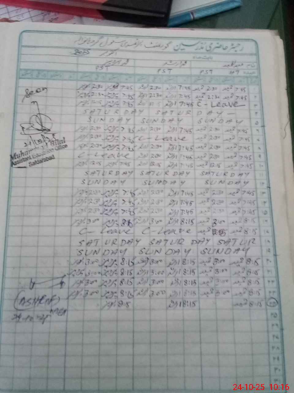| CNIC | Full Name | Designation | R/C | Absence During Last Calender Month |