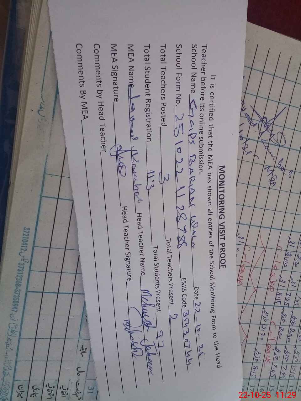 | EMIS Code: 35430744 | Name of School: GGPS BARIAN WALA | |||