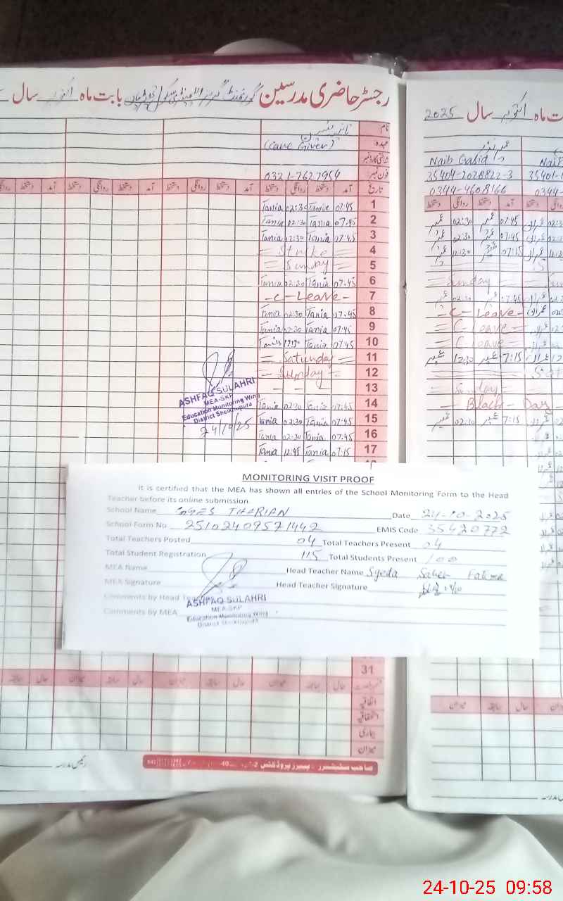 | Attendance Register | Head Teacher | MEA with School | Visit Proof |