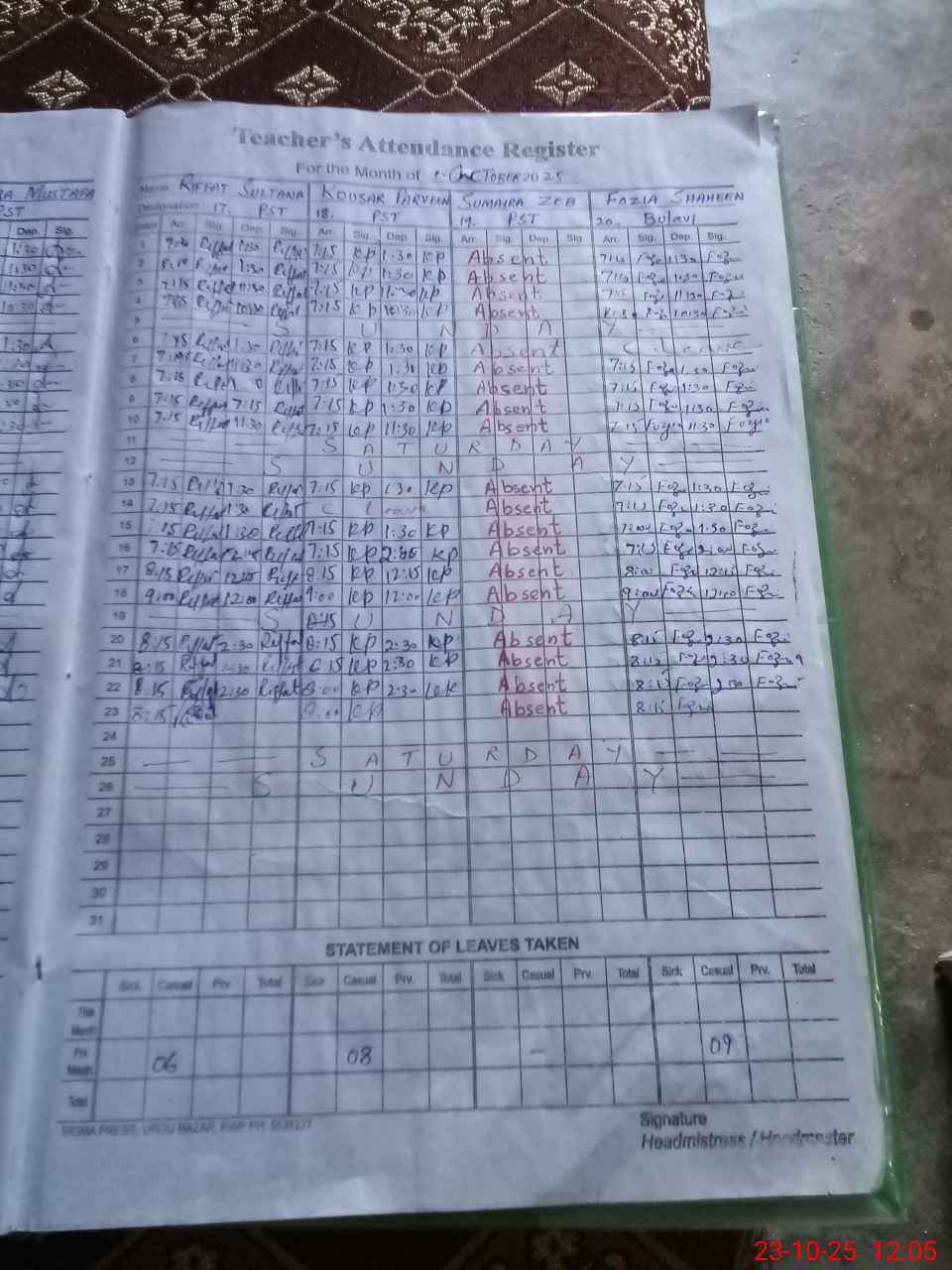 | Remarks (Use Separate Page if Required): 3740510386460 Sumaira Zeb PST absent for the last seven months | |||||