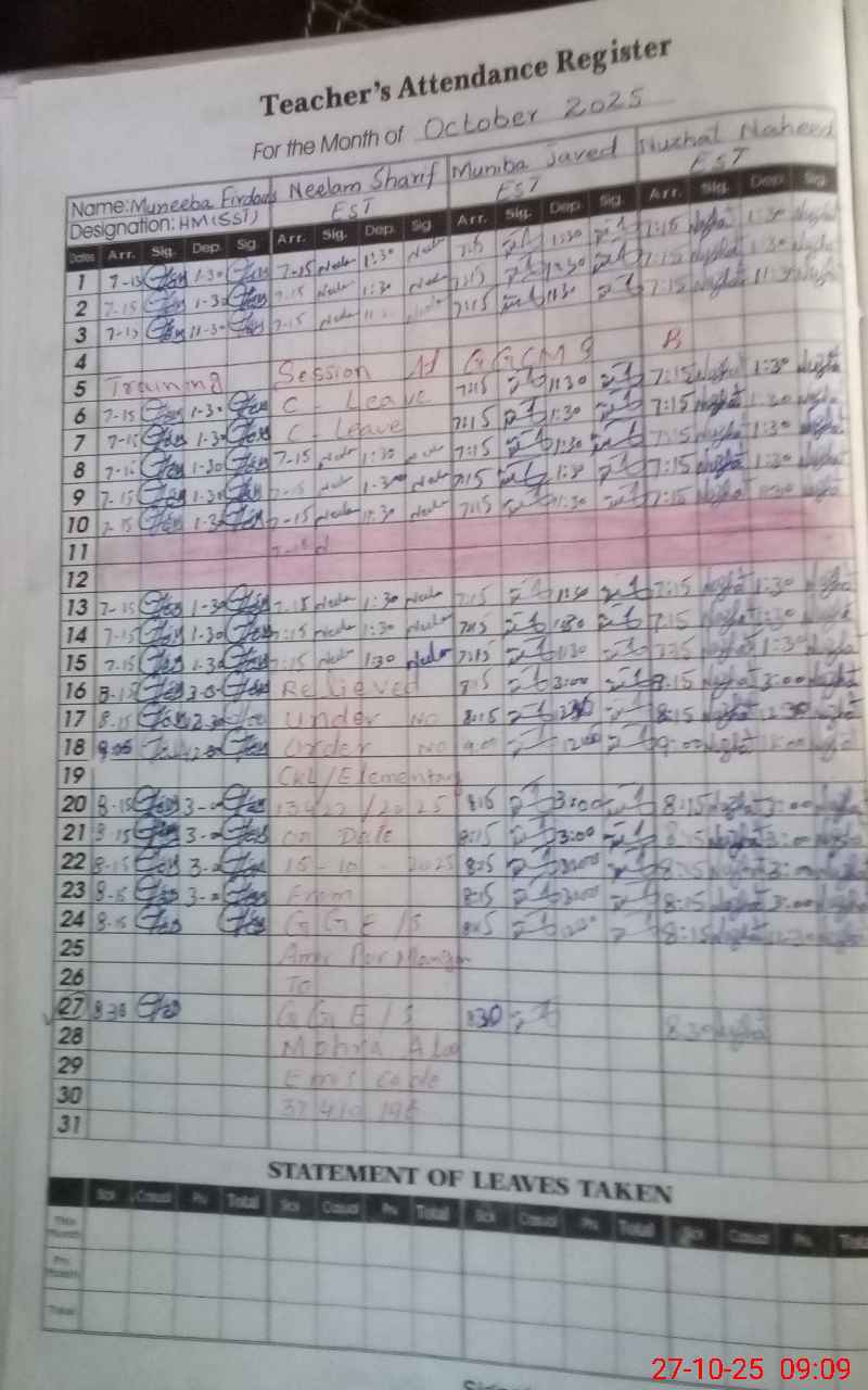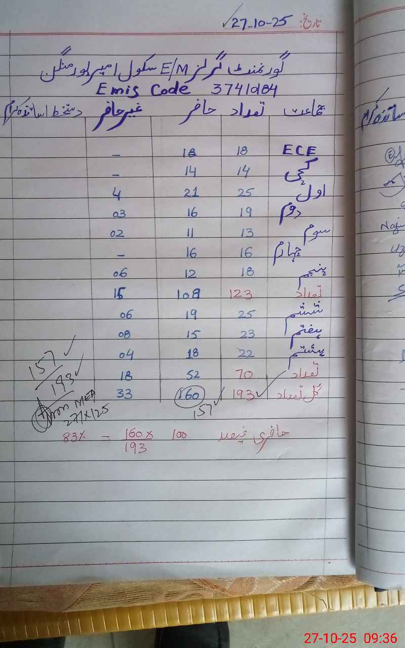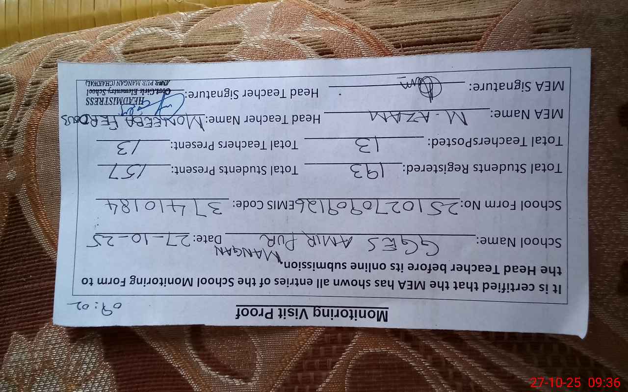 | Attendance Register | Head Teacher | MEA with School | Visit Proof |
