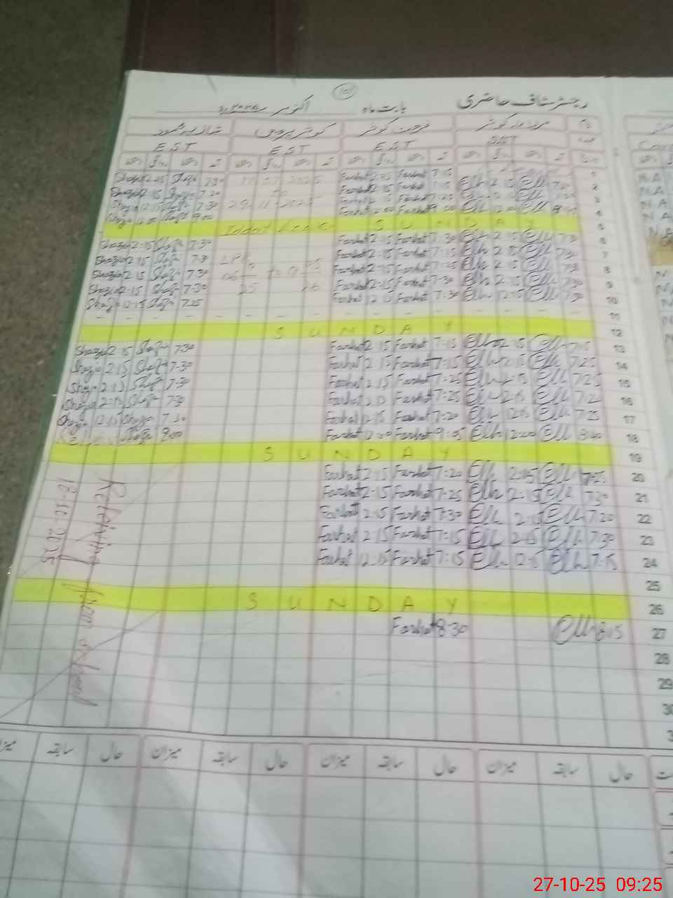 | CNIC | Full Name | Designation | R/C | Absence During Last Calender Month |
