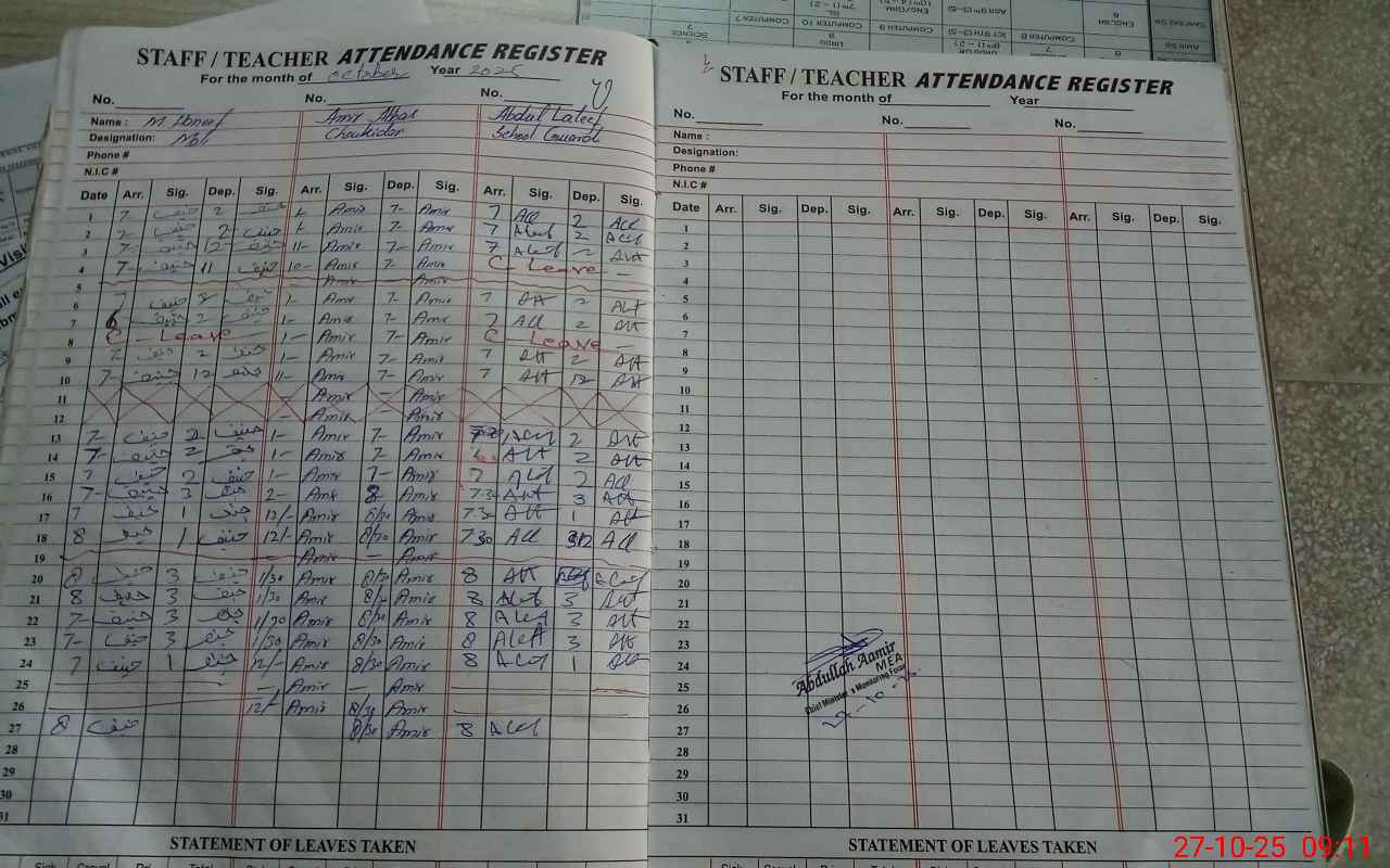 | 36**** | Mu**** Am**** No**** | Regular | 3 | 0 | 2 | 0 | 0 | 0 | 0 | 0 | 3 | Absent (Un-Authorized) | |