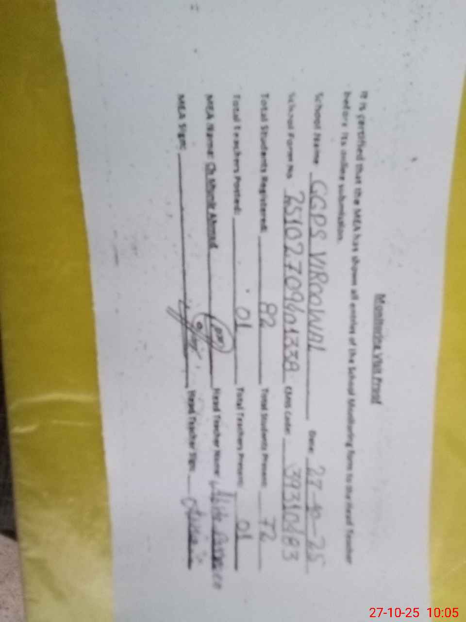 | Monitoring Date: 27-10-2025 | Start Time: 27-10-2025 09:40 AM | End Time: 27-10-2025 10:05 AM | Name of MEA: MU**** AH**** | |