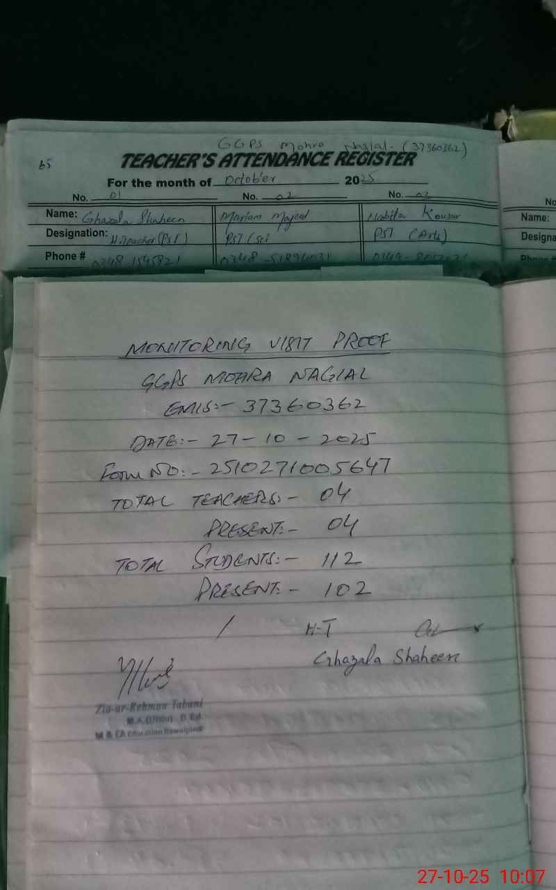 | EMIS Code: 37360362 | Name of School: GGPS MOHRA NAGIAL | |||
