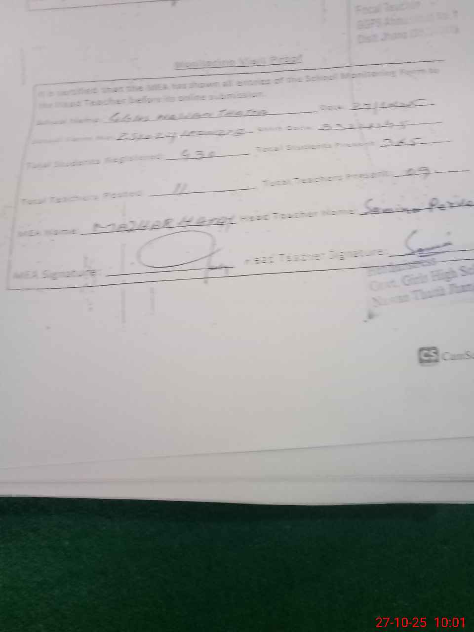 | Name: Hi**** Sa**** Designation: (School Headmaster's/Headmistress's) Sse Eng Phone/Cell Number: 03**** |