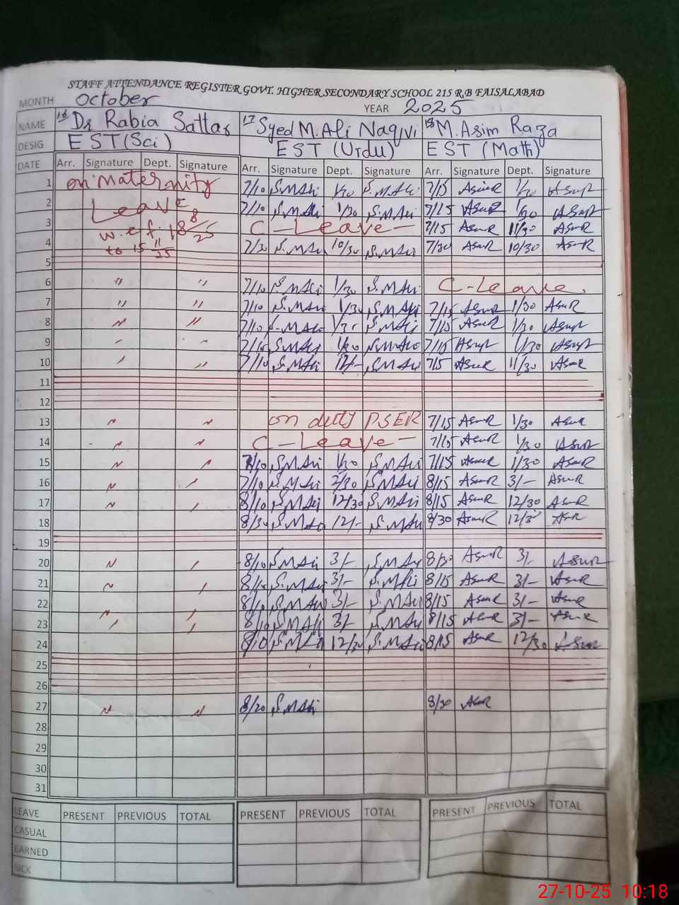 | 33**** | Mu**** Ta**** iq**** | WATER MAN | 0 | 0 | 30 | 0 | 0 | 0 | 0 | 0 | 0 | Absent (Un-Authorized) | |