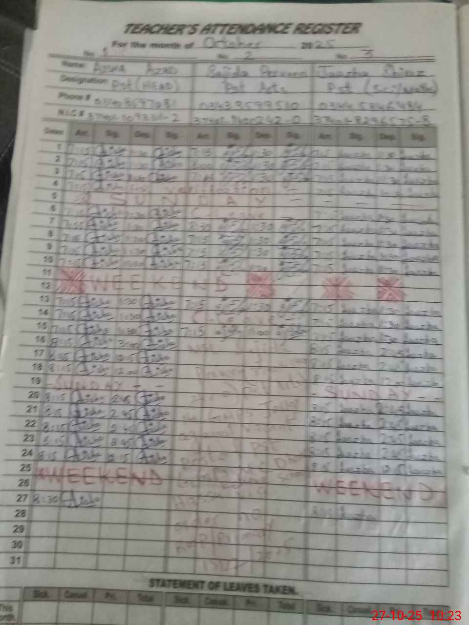 | Name: Ai**** Az**** Designation: (School Headmaster's/Headmistress's) PST/ Phone/Cell Number: 03**** |