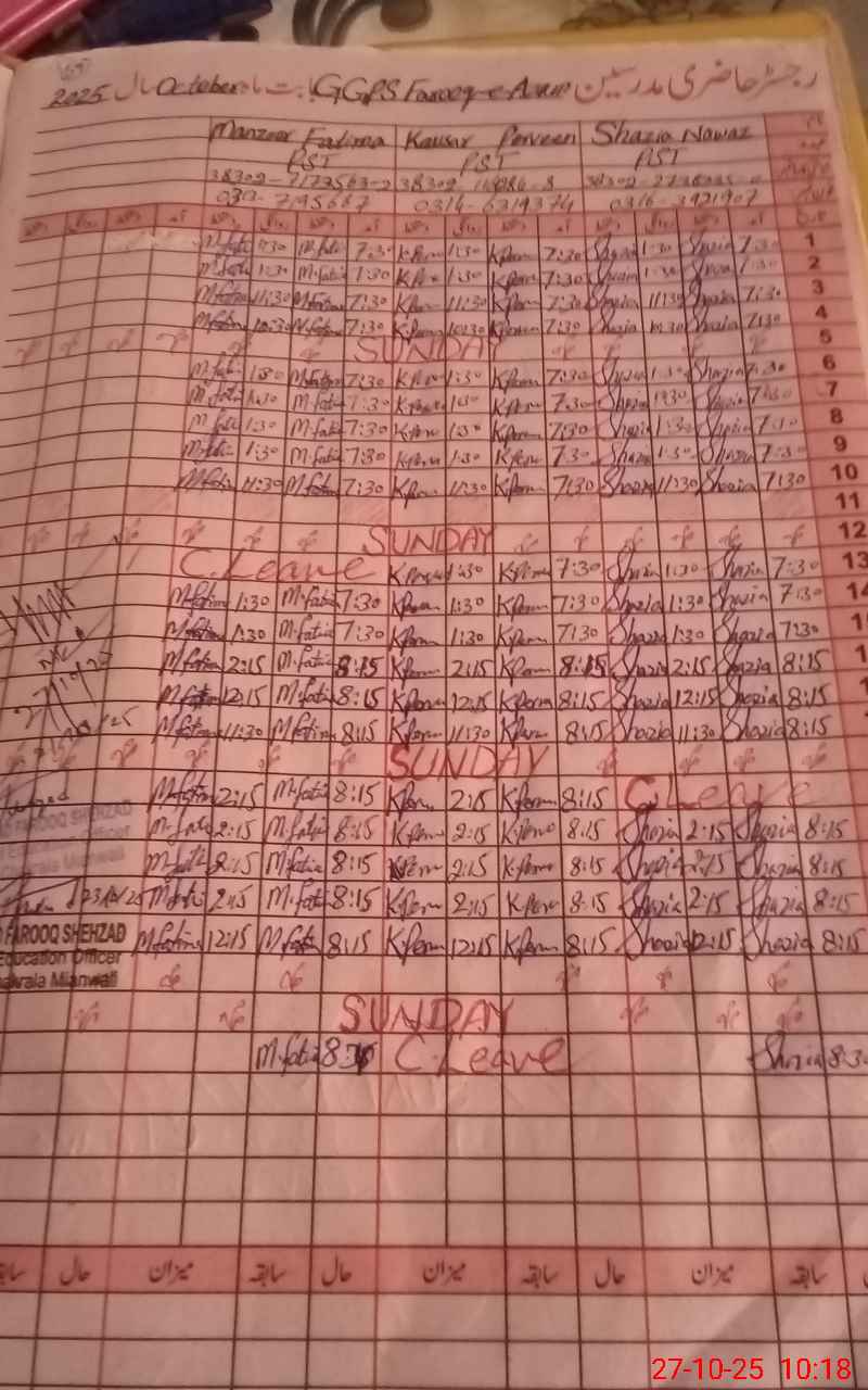 | EMIS Code: 38320987 | Name of School: GGPS FAROOQ-E- AZAM CHAKRALA | |||