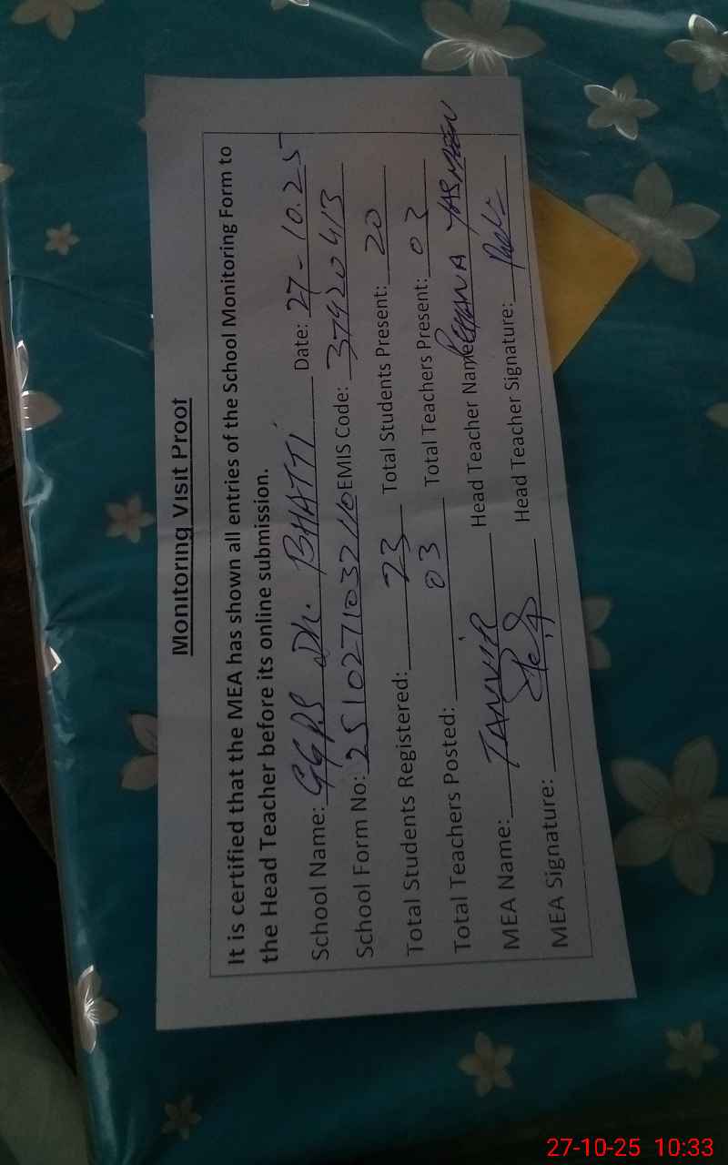| EMIS Code: 37420413 | Name of School: GGPS DHOK BHATTI | |||
