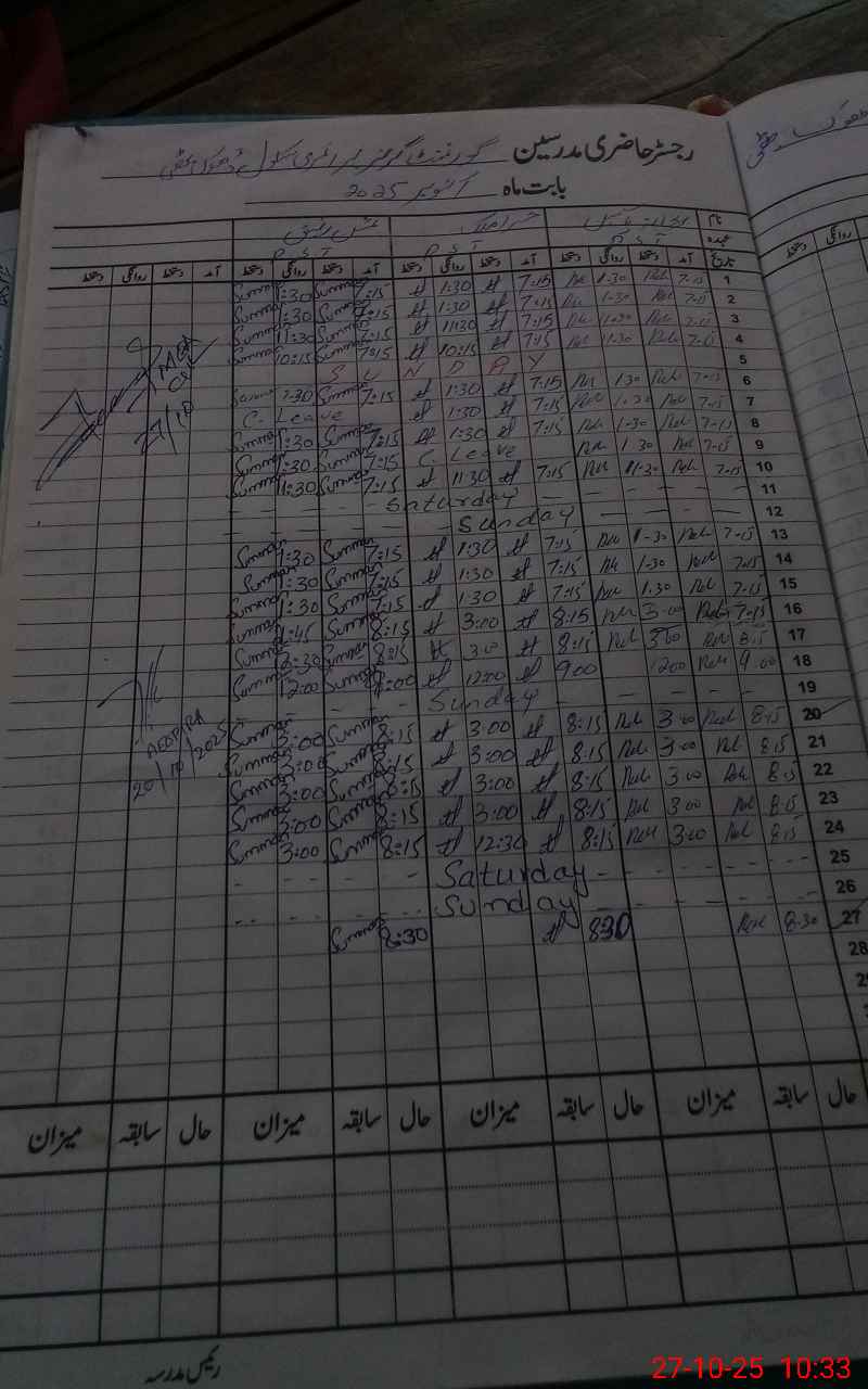 | CNIC | Full Name | Designation | R/C | Absence During Last Calender Month |