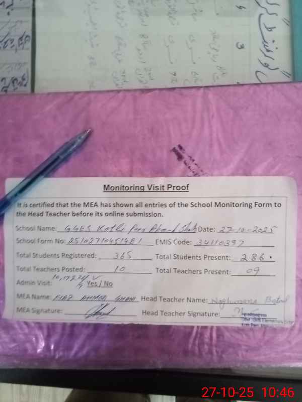 | EMIS Code: 34110397 | Name of School: GGES KOTLI PEER AHMED SHAH | |||