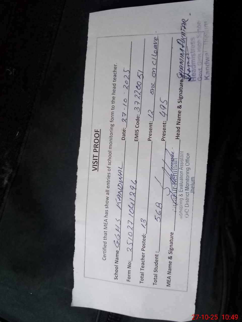 | EMIS Code: 37220051 | Name of School: GGHS KANDWAL | |||