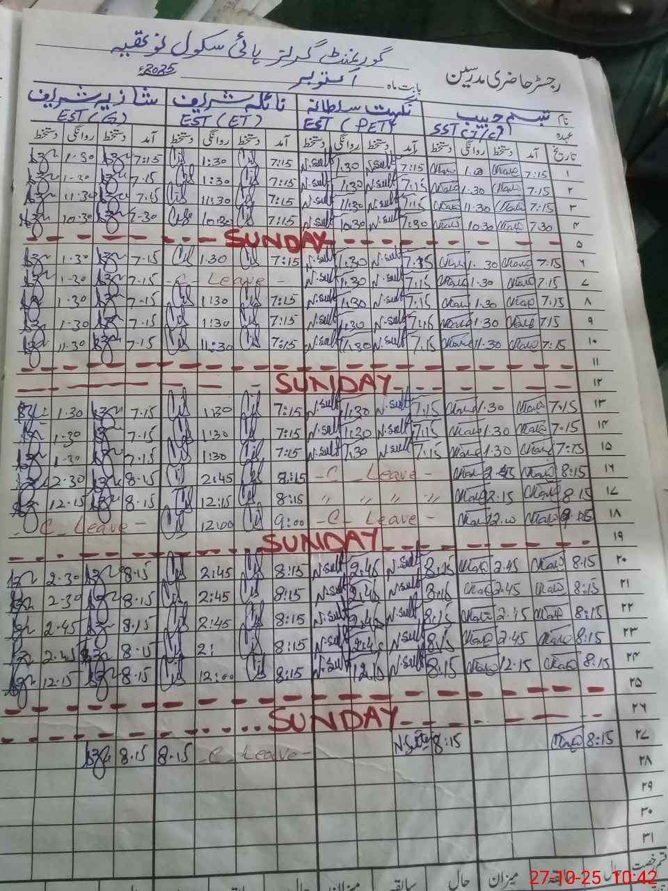 | 37**** | Na**** Sh**** | EST | Regular | 0 | 0 | 0 | 0 | 0 | 0 | 0 | 0 | 0 | Casual |