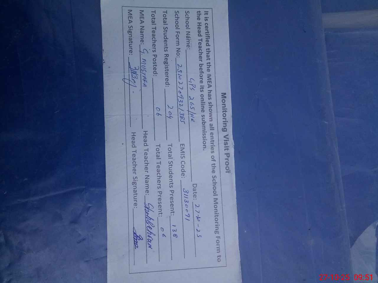 | EMIS Code: 31130091 | Name of School: GPS 265/HR | |||