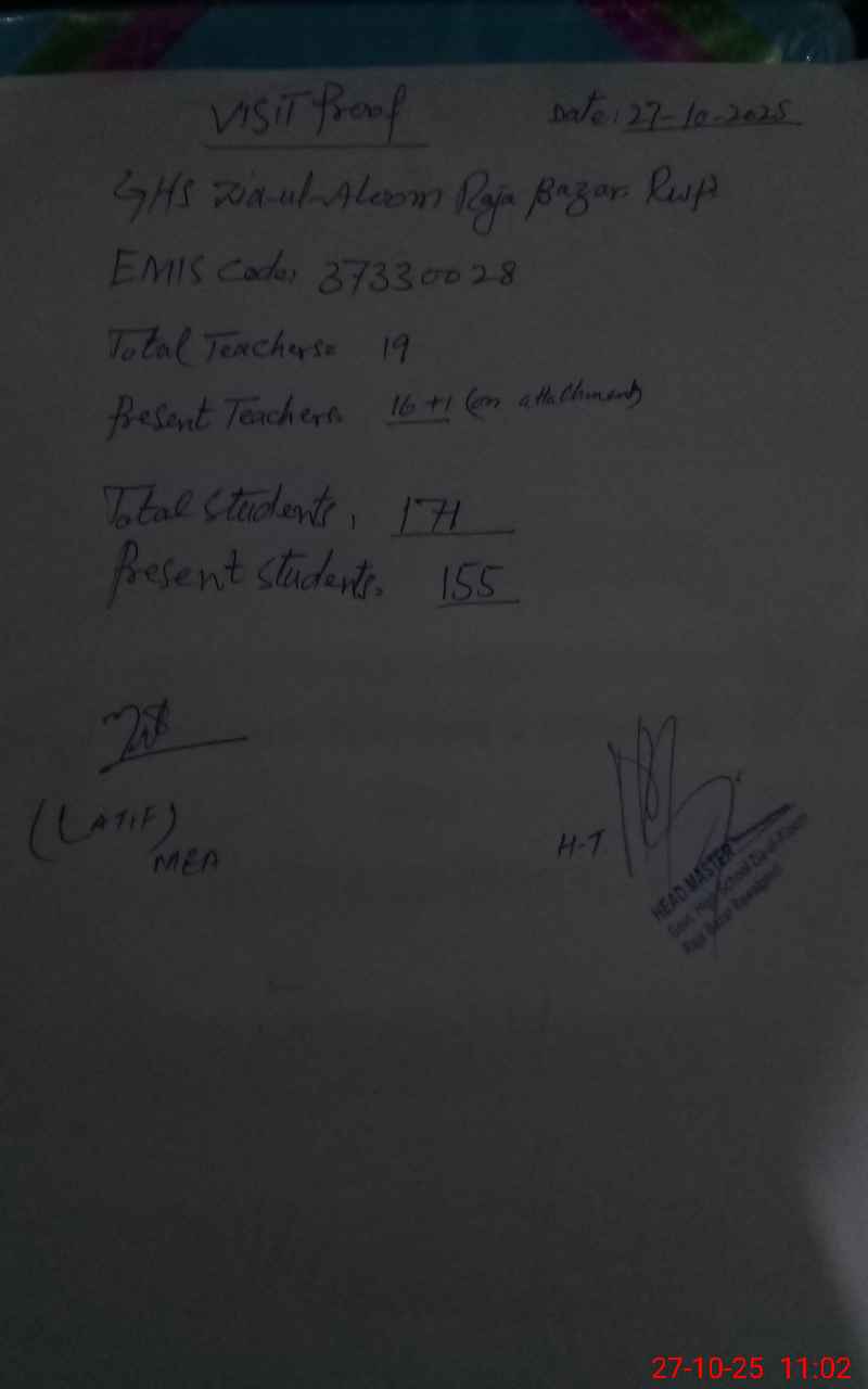 | EMIS Code: 37330028 | Name of School: GHS ZIA-UL-ALOOM RAJA BAZAR | |||