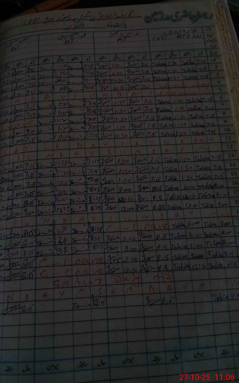 | CNIC | Full Name | Designation | R/C | Absence During Last Calender Month |