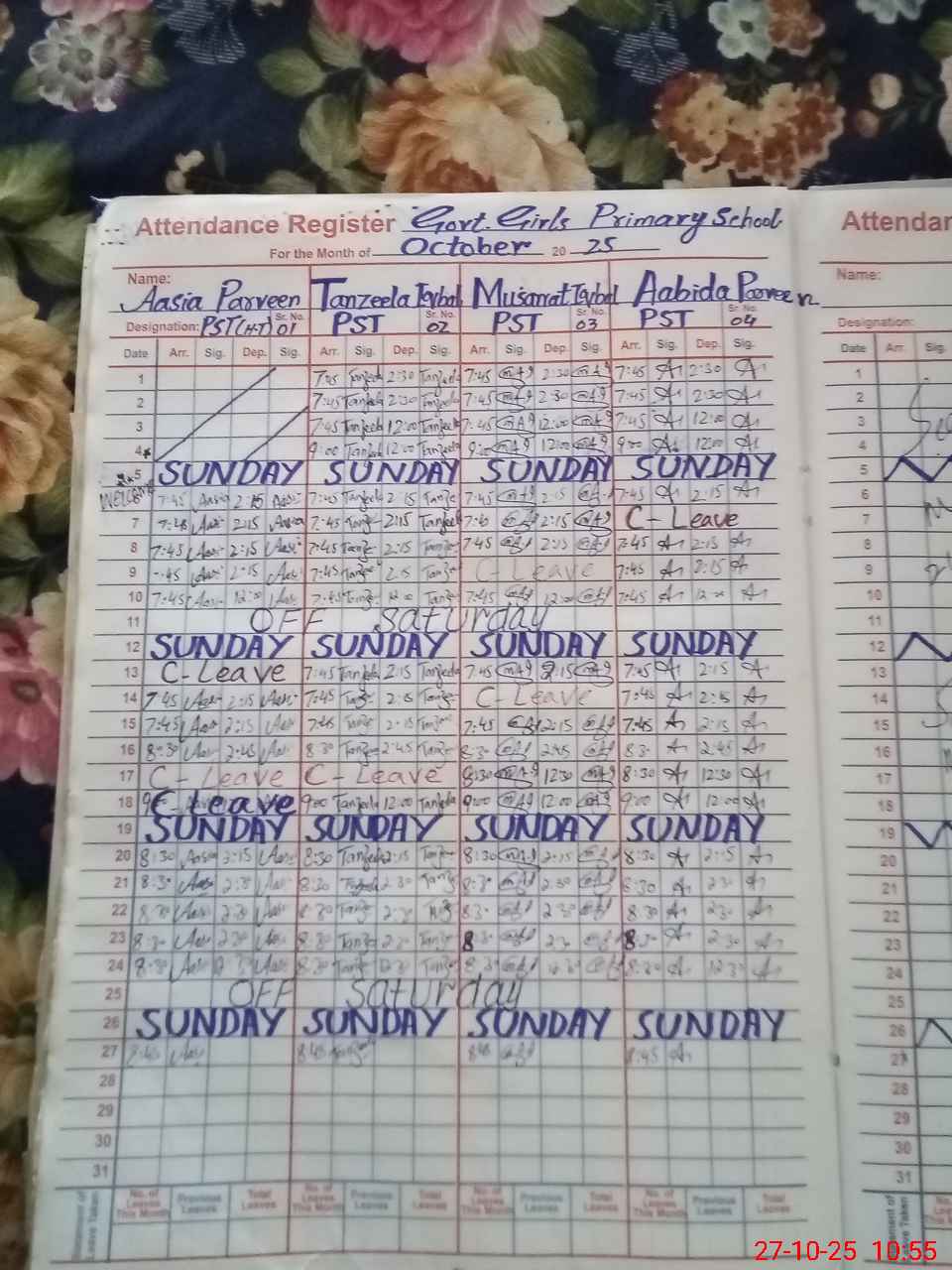 | Leave | Duty | Absent | Maternity | Medical | Ex- Pak |