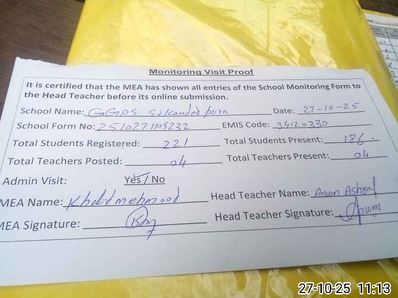 | EMIS Code: 34120330 | Name of School: GGPS SIKANDAR PURA | |||