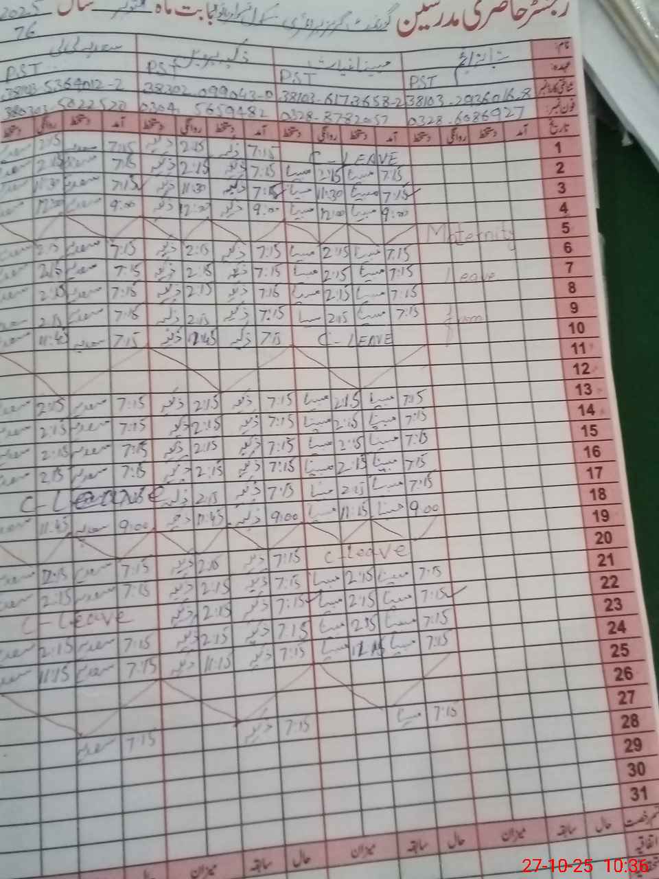 | 38**** | Sh**** An**** | PST | Regular | 0 | 0 | 0 | 0 | 0 | 0 | 0 | 0 | 0 | Maternity |