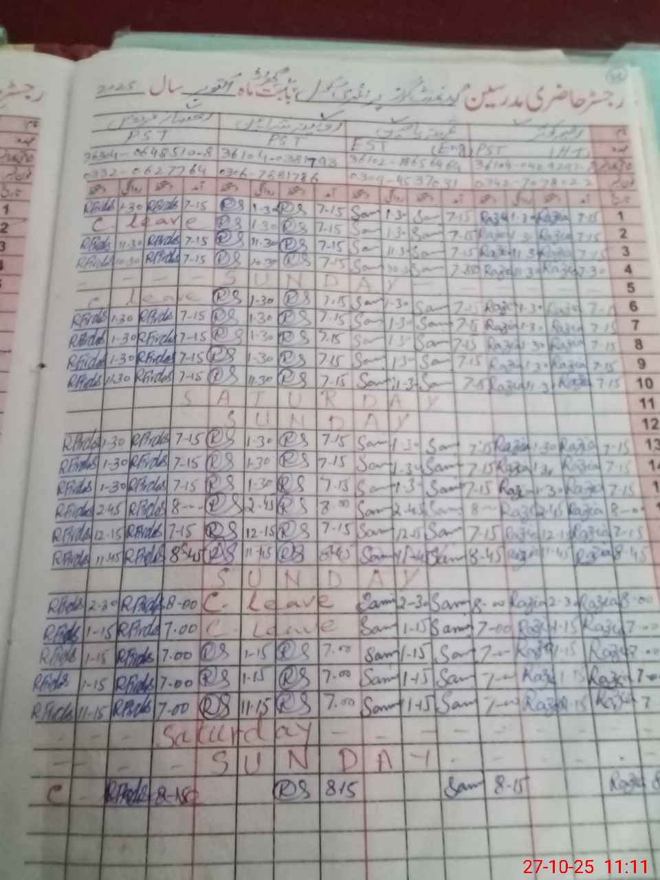 | 36**** | Ki**** Su**** | PST | Regular | 1 | 0 | 0 | 0 | 0 | 0 | 0 | 0 | 1 | Casual |