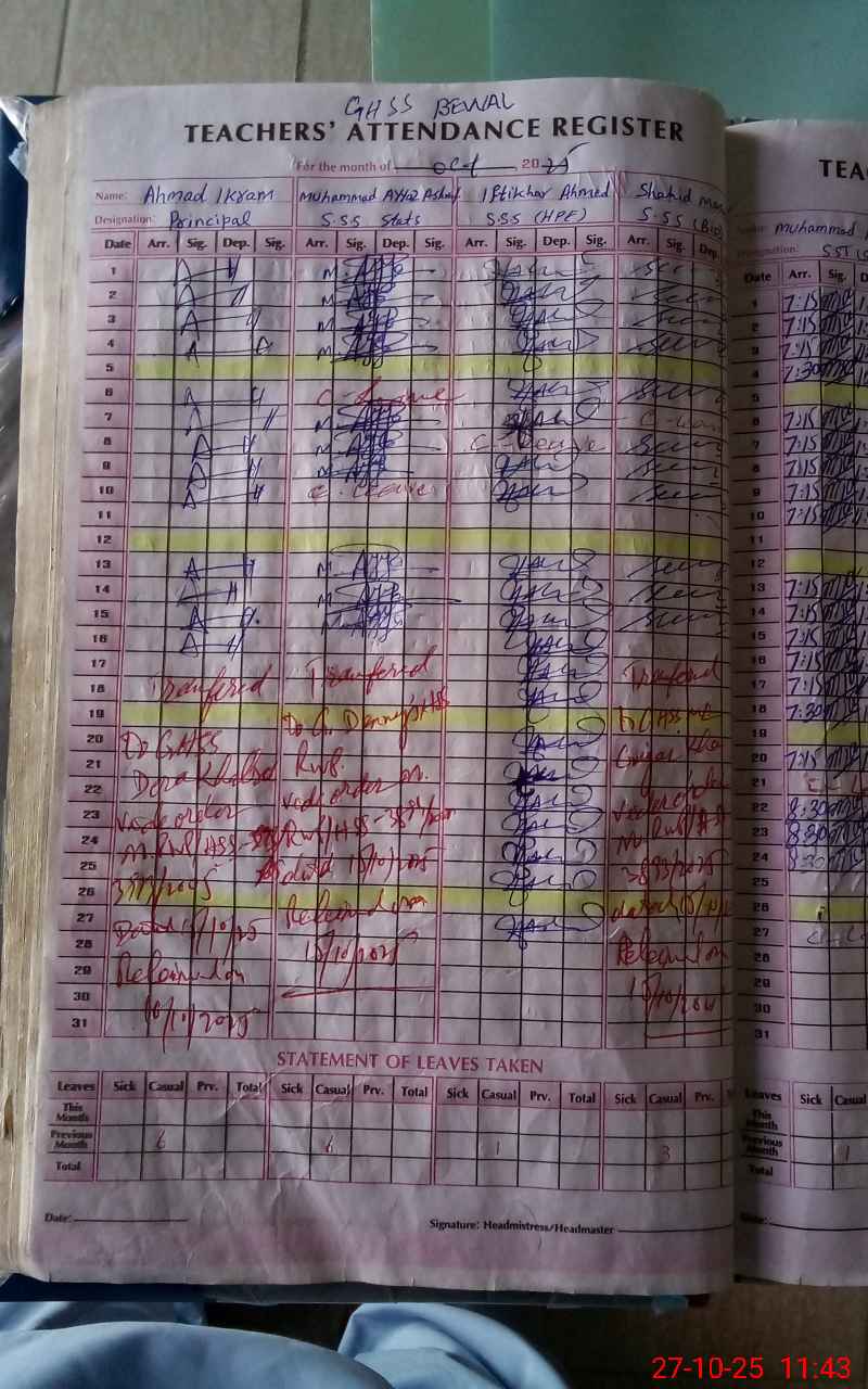 | 37**** | Wa**** Ah**** | CHOKIDAR | Regular | 2 | 0 | 0 | 0 | 0 | 0 | 0 | 0 | 2 | Casual |