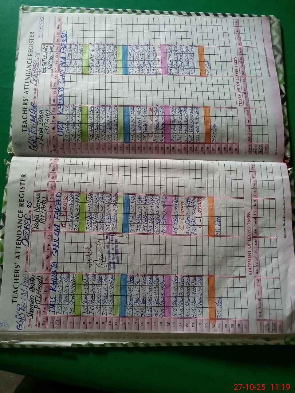 | Leave | Duty | Absent | Maternity | Medical | Ex- Pak |