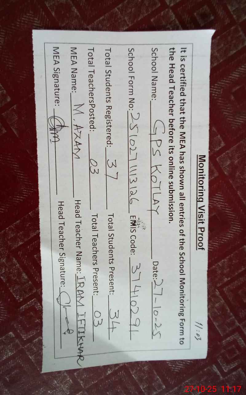| EMIS Code: 37410291 | Name of School: GPS KOTLAY | |||