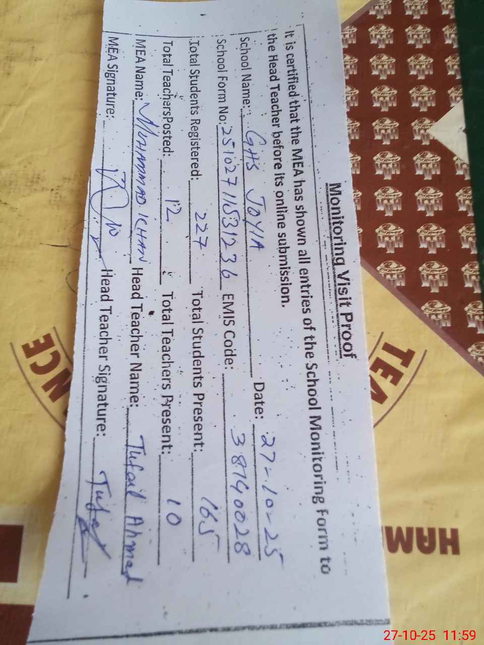 | EMIS Code: 38140028 | Name of School: GHS JOYIA | |||
