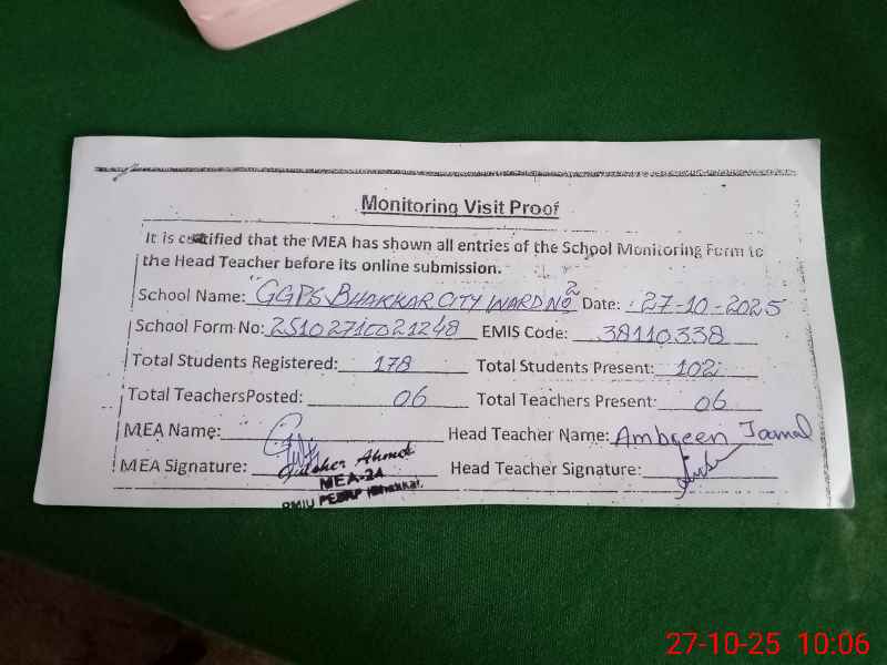 | EMIS Code: 38110338 | Name of School: GGPS BHAKKAR CITY WARD NO 2 | |||