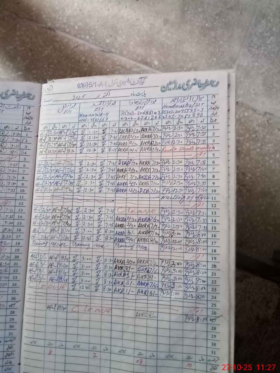 | Name: IF**** AH**** Designation: (School Headmaster's/Headmistress's) SST Phone/Cell Number: 03**** |