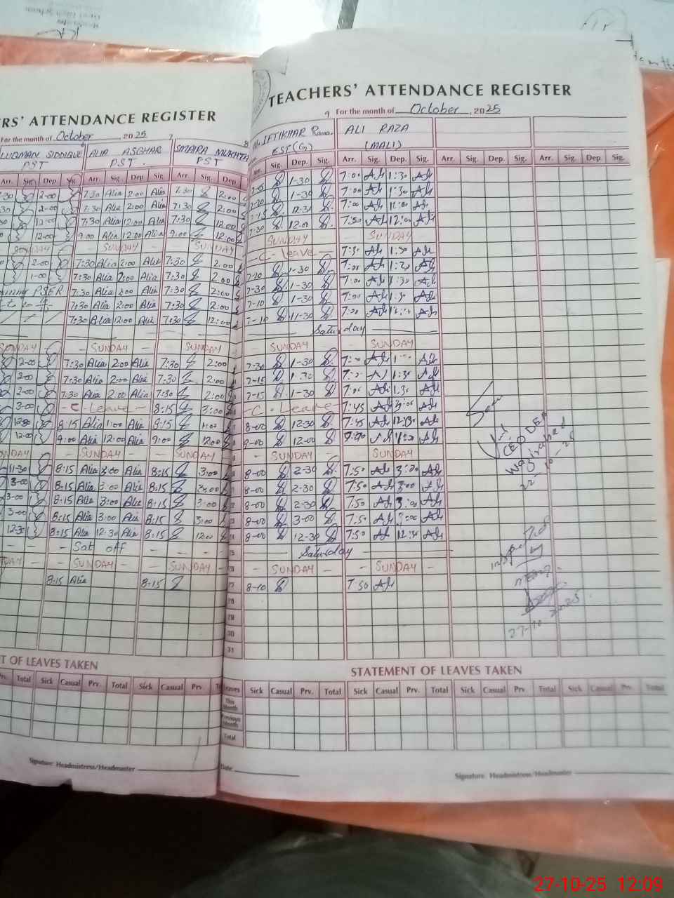 | CNIC | Full Name | Designation | R/C | Absence During Last Calender Month |