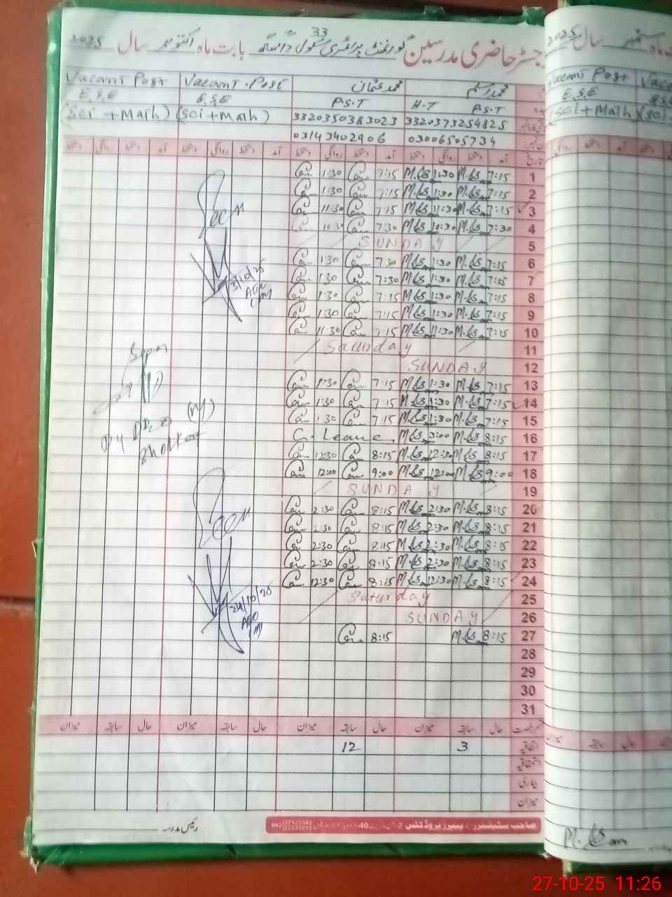 | Name: MAS**** Designation: (School Headmaster's/Headmistress's) PST Phone/Cell Number: 03**** |