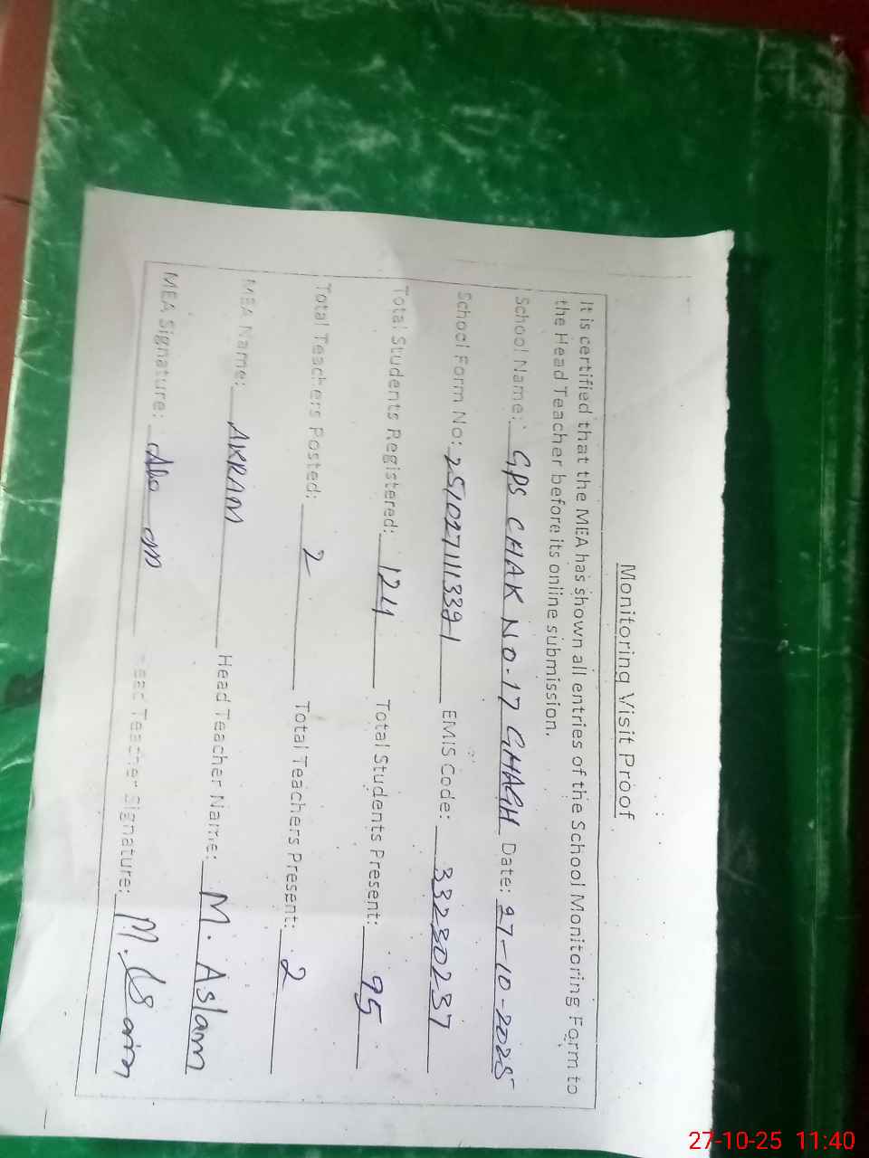 | EMIS Code: 33230237 | Name of School: GPS CHAK NO 17 GHAGH | |||