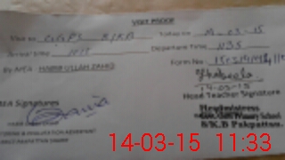 | School Visited by School Health & Nutrition Supervisor (No. of Visits) | 1 | Name1: | Javed Iqbal | Name2: | |