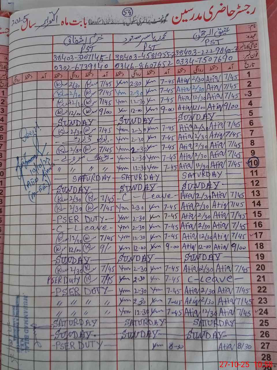 | Name: AT**** URRE**** Designation: (School Headmaster's/Headmistress's) PST Phone/Cell Number: 03**** 75**** |