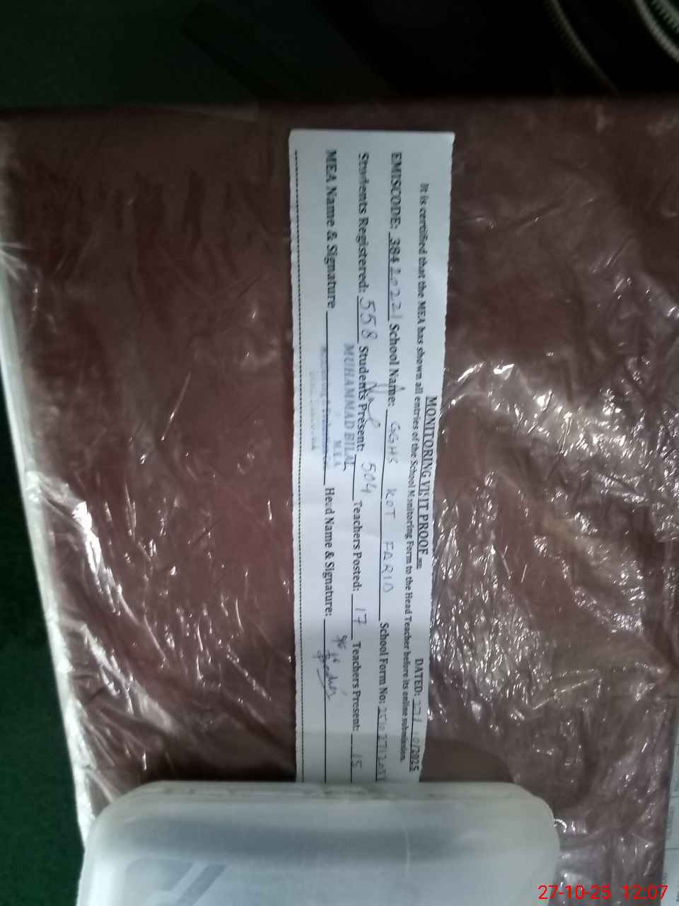 | Attendance Register | Head Teacher | MEA with School | Visit Proof |