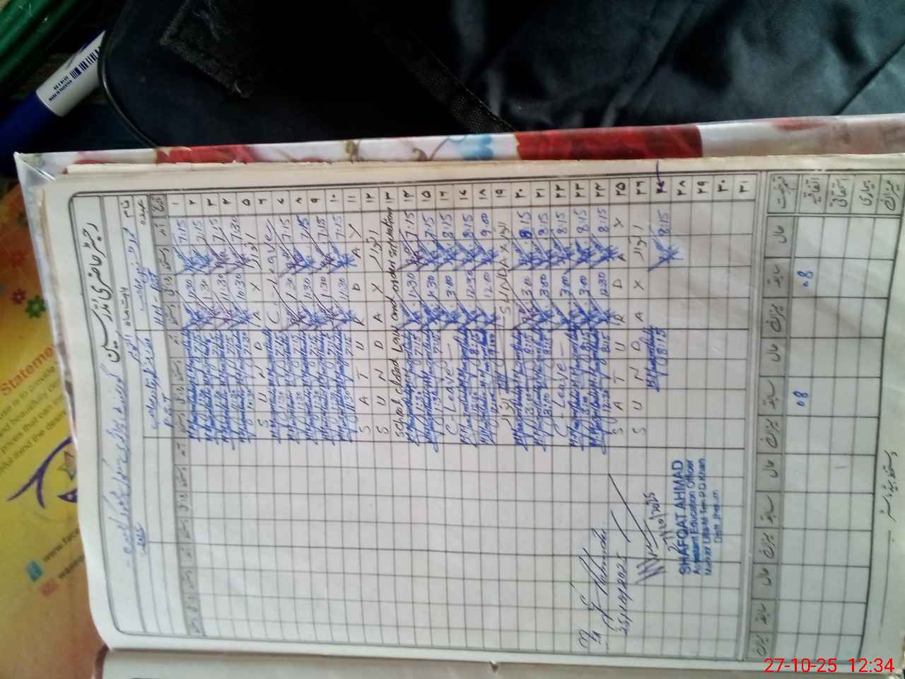 | CNIC | Full Name | Designation | R/C | Absence During Last Calender Month |