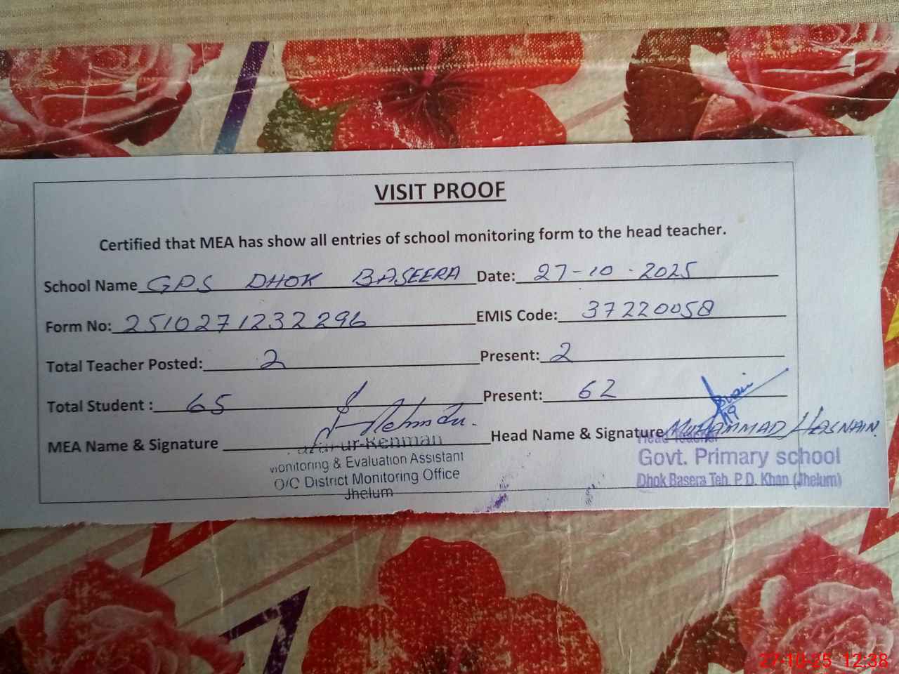 | EMIS Code: 37220058 | Name of School: GPS DHOK BASERA | |||