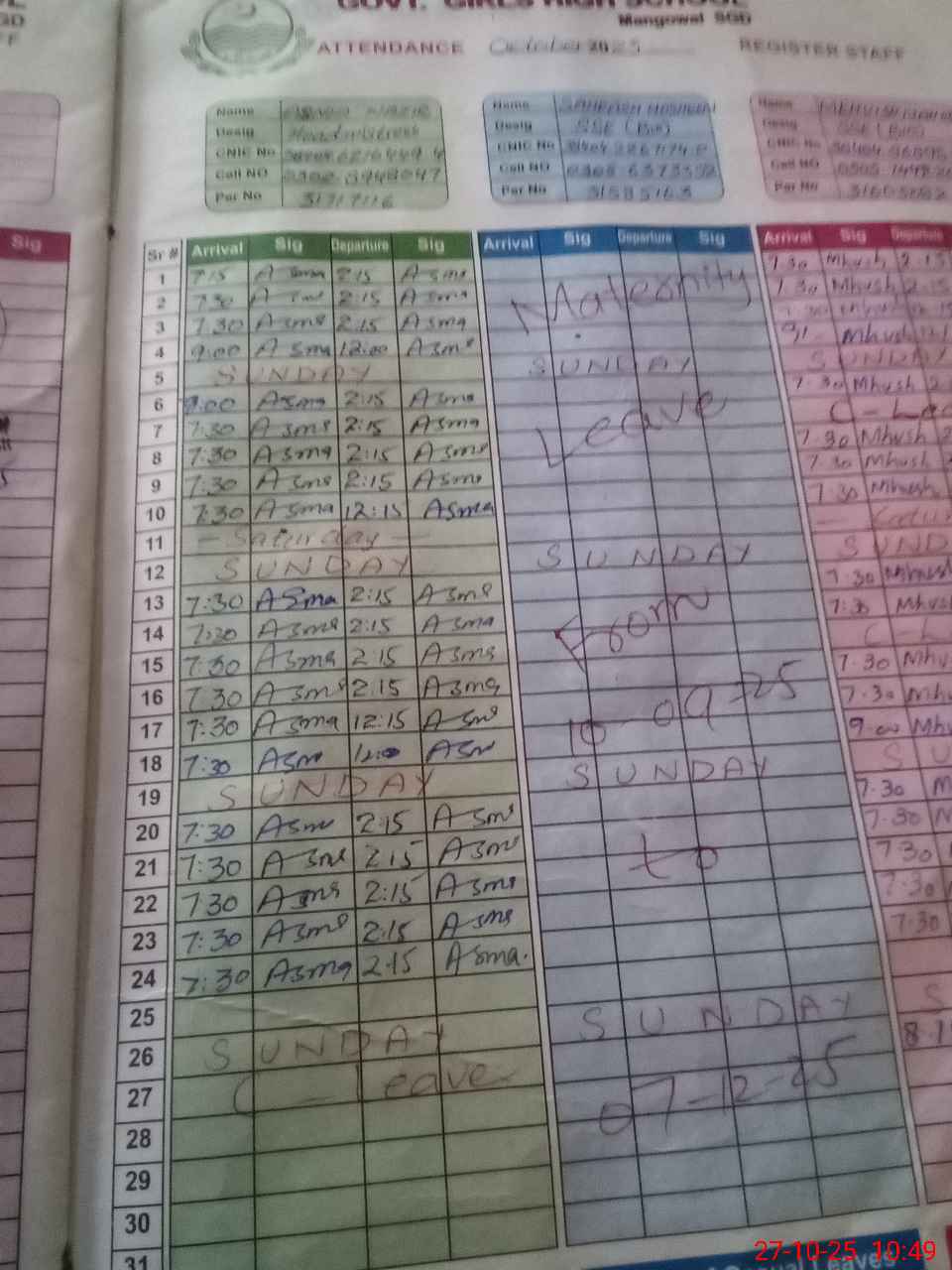 | 38**** | Sa**** No**** | Contract | 23 | 0 | 0 | 20 | 0 | 0 | 0 | 0 | 3 | Maternity | |