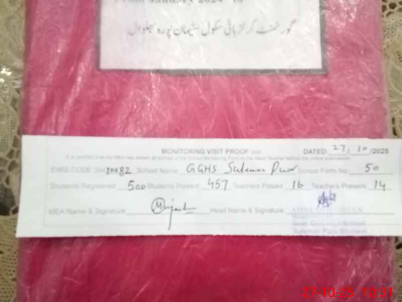 | EMIS Code: 38410082 | Name of School: GGHS SULEMAN PURA | |||